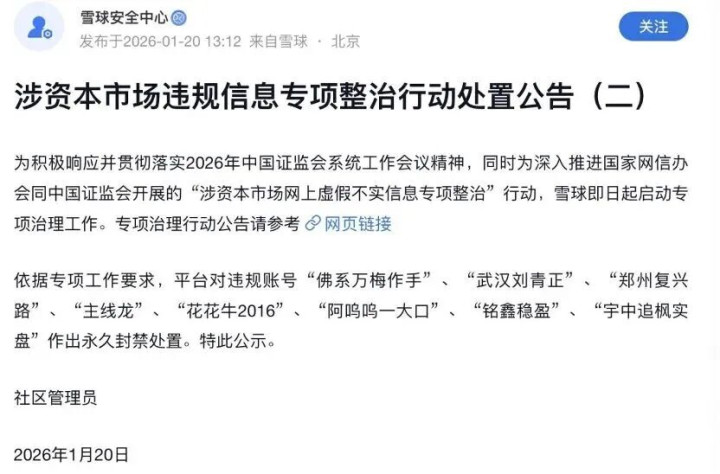 看成投资社区,雪球公布四大整治要点:打击过度炒作褪色跟风、打击罪犯缱绻非法导流、打击团伙化操控、打击编造失误信息。被永封的账号多波及“游资战法”“带队晒盘”等举止,这些曾诱骗流量的作念法如今成为要点打击对象。