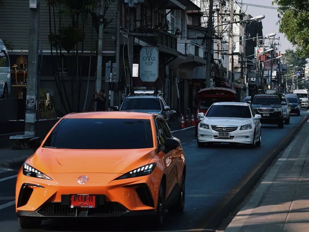 在塔佩门隔壁的车流里,在宁曼路的咖啡馆门口,最典型的是名爵——这个品牌在当地险些带着某种半原土化的气质。在清迈最大的购物中心Central Festival Chiang Mai里,它恒久占据着展台位置,车辆被放在最显眼的所在,像是在不休强化一种存在感。