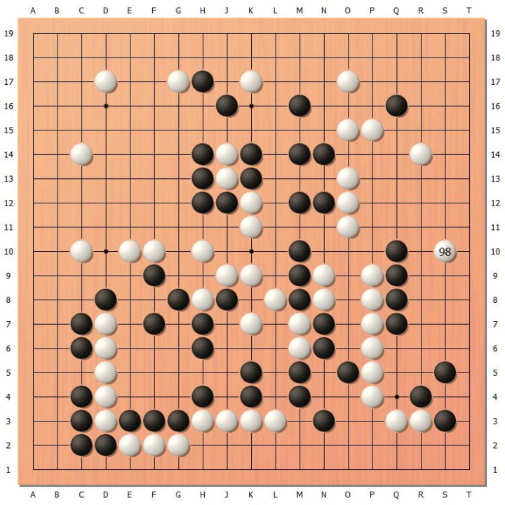 本局在难懂的读秒与计较中激动,一度被认为芝野虎丸十段占优,但一力辽棋圣吃住了芝野虎丸十段右边大龙,21点步地急转直下,迎来结尾。