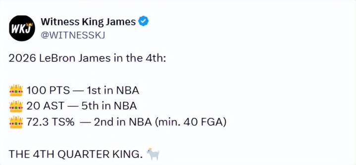 随后,好意思媒也晒出了詹姆斯干预2026年后的第四节数据——