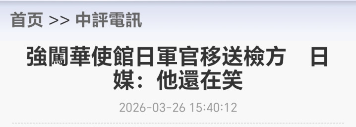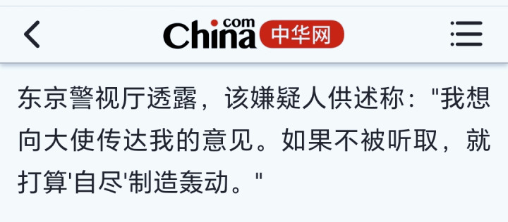 3月24日,村田晃大因强闯中国驻日大使馆被逮捕,26日被日本警方移送检方,从那以后就再也莫得出来,这意味着法官批准了检方提交的羁押肯求。
