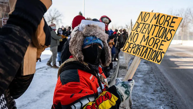 本日上昼,广大宗教东说念主士来到明尼阿波利斯-圣保罗国外机场,与数百名机场使命主说念主员所有这个词举行抗议,约100名宗教东说念主士被捕。在明尼苏达州关押犯警侨民的联邦机构大楼外,试图阻滞说念路的抗议者与警方救济并爆发突破,多东说念主被捕。