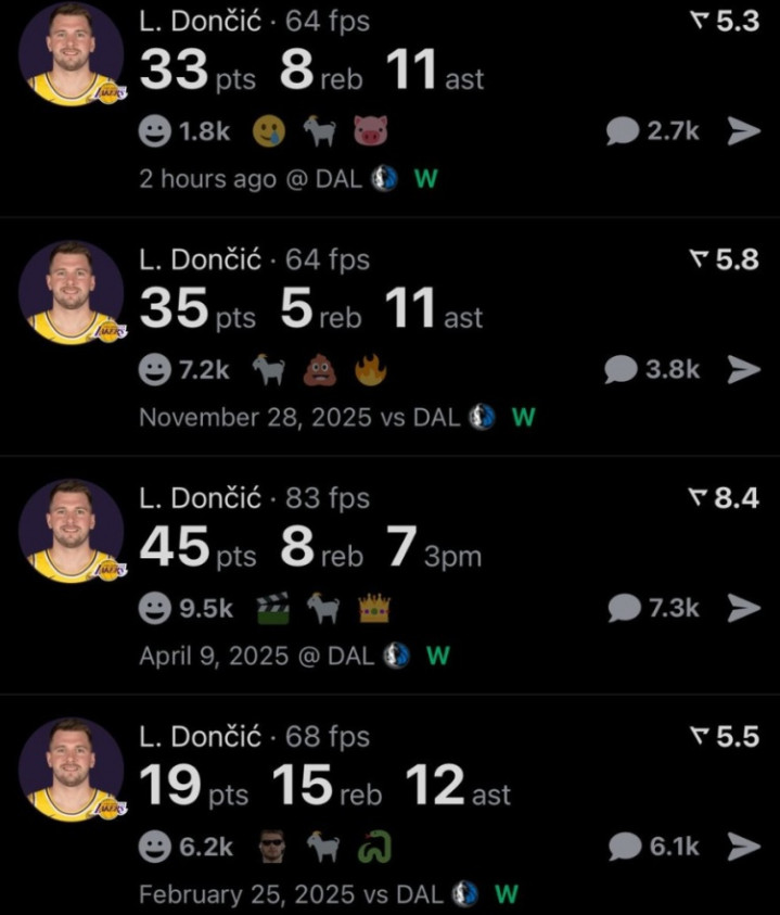 在此前对阵独行侠的三场比赛中,东契奇差异获取19分15篮板12助攻、45分8篮板7助攻、35分5篮板11助攻,他濒临独行侠四场比赛场均33分9篮板10.3助攻。