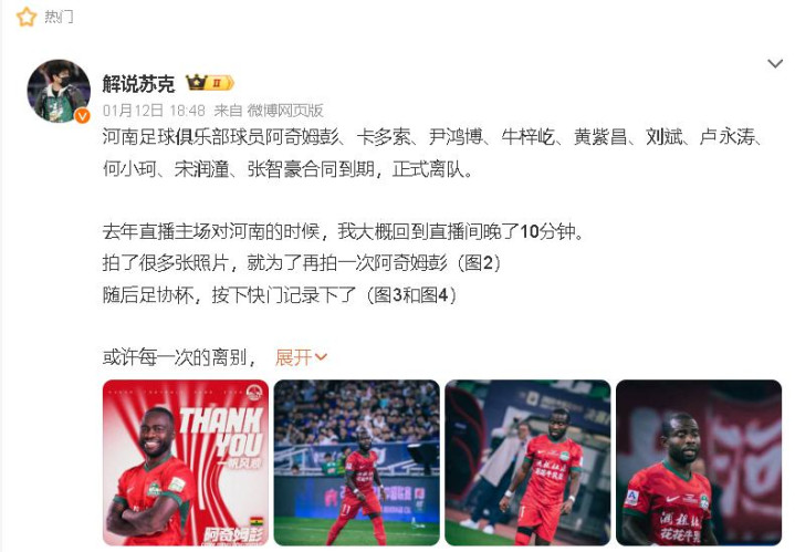 此次河南队不仅阿奇姆彭要离开,还有卡多索、尹鸿博、牛梓屹、黄紫昌、刘斌、卢永涛、何不珂、宋泣潼、张智豪等东谈主协议到期,负责告示离队,走了差不无边支球队,看来河南队也要进行大换血,这是一件善事情,评释球队有新的思法,有新的方针,让河南球队看到本年的但愿。