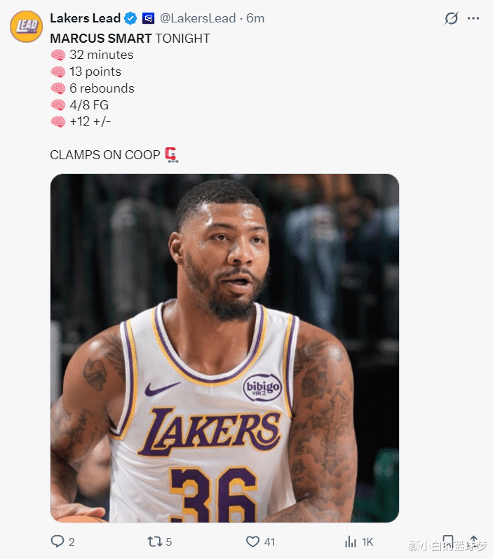 这场比赛小节的斯玛特才是确凿的他,终场前9分38秒湖东谈主用五小声威:斯玛特、东契奇、詹姆斯、拉拉维亚、八村垒,身高最高的是2.06米的詹姆斯,斯玛特则是最矮的,但斯玛特在小节聚拢三次冲破制造了三个犯规(其中一个2+1),环节是他封盖了弗拉格的上篮,他还完成了一个从天而下的补篮,小节拿到7分4篮板1助攻1抢断。