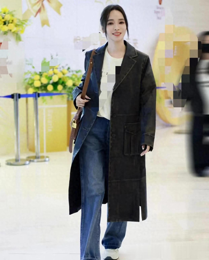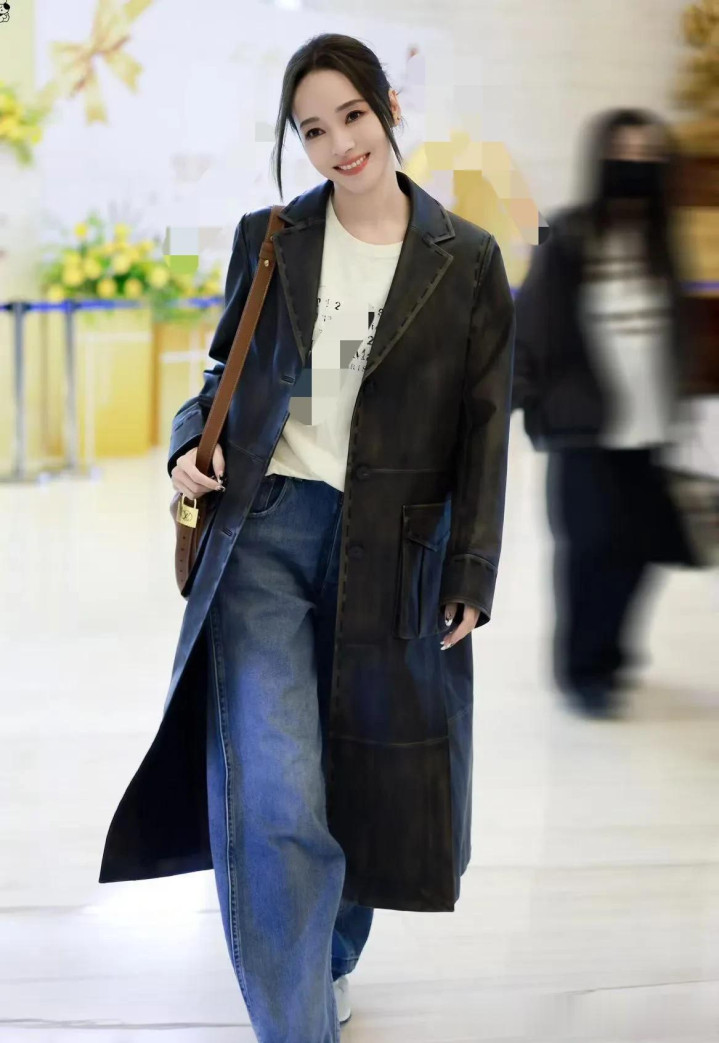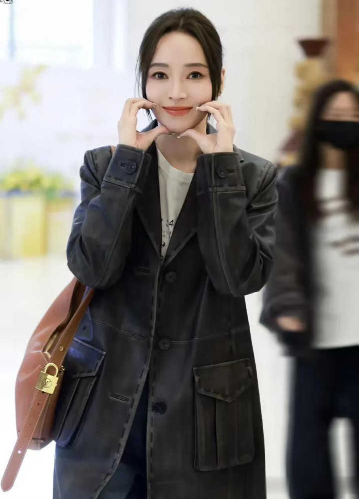 21点游戏官网 侯佩岑不愧是穿搭妙手! 皮大衣+字母T+牛仔裤, 端淑减龄又高档!