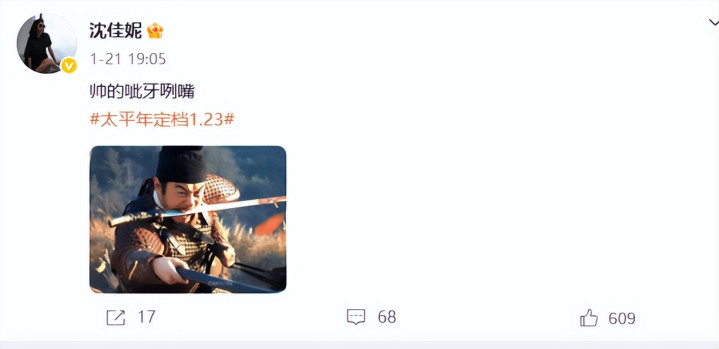 近日沈佳妮还发文为老公的新作品宣传,固然驳斥量三三两两,可是这是份情意!