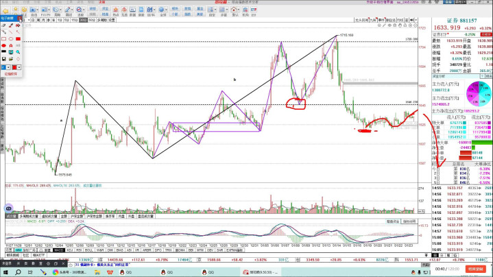 是以证券在这个位置可能决定指数短期一两天走势,证券在这个位置向下的概率相对来说比拟大,因为依然给人人判断了,一千六百四十六这个位置需要尽快拉且归,从现在的所在来看,震了几天了依然莫得拉且归,是以这个位置如若再拉不且归,朝下走,破前低的技能风险就会到来。