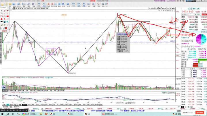 证券指数,日线结构不说,因为在日线结构上头不错看到它是核心,险阻的核心,朝上这个位置是莫得过前边高点的,以致下降趋势线齐没过,是以这个位置是内二脉,除非能拉记忆,但现在是莫得拉且归的。