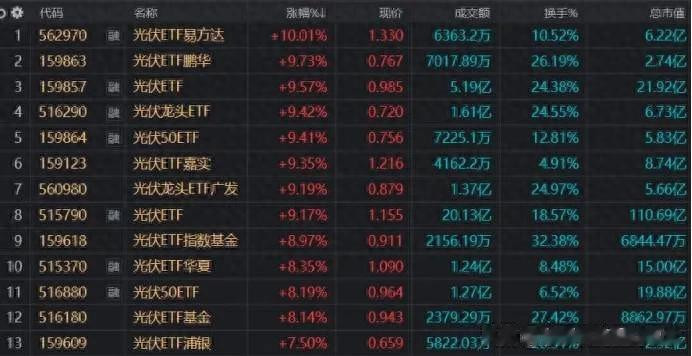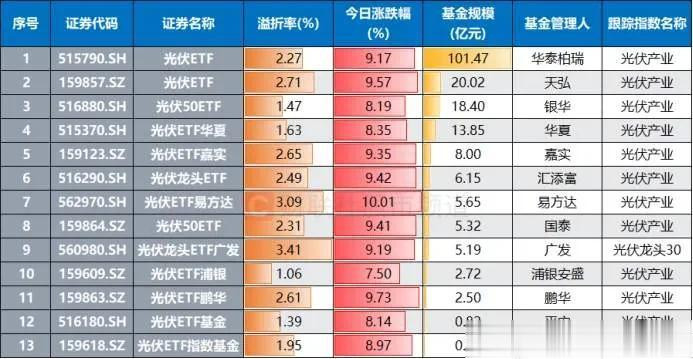 2026年1月23日,光伏板块迎来全面爆发,一众光伏主题ETF集体走出溢价大涨行情,成为A股商场最亮眼的局势线。光伏ETF易方达(562970)尾盘封板涨停,溢价率飙升至3%,光伏50ETF(159864)大涨超5%,深市领域最大的光伏ETF(159857)想法指数狂飙近7%且盘中获6300万份资金申购,其余晖伏系ETF多数收涨超8%且均处于溢价景象,资金抢筹感情尽显,光伏ETF俨然成为投资者眼中的“香饽饽”。