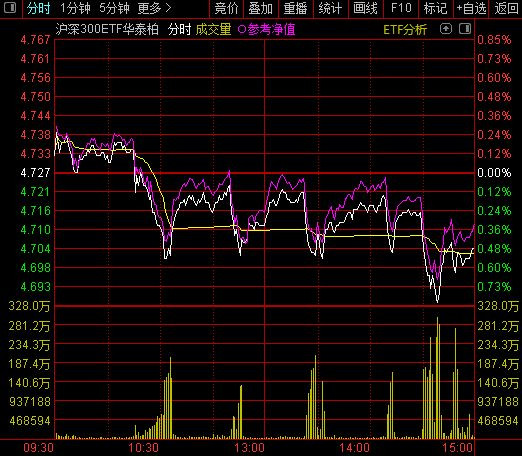比如本周五,宽基ETF每次的短时放量下落,不仅时分比拟前几天更短,况且幅度也比前几天更小。下图是沪深300ETF华泰柏瑞(510300)周五的走势图,通过此图,全球能明显达哥说的这极少。