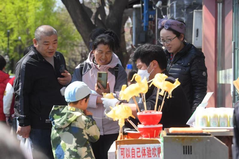 春光偶合,破钞场景也如似锦般盛开。在东城区隆福寺,“隆福潮集”非遗市集东说念主头攒动。糖画艺东说念主手腕轻转,一只凤凰跃然板上;京绣摊位前,年青东说念主列队定制春日香囊。假期前两日,市集蛊惑客流13.9万东说念主次,老字号与新锐文创在此碰撞出别样火花。