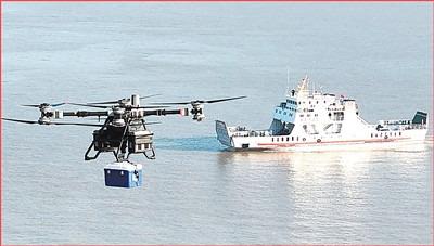 无东说念主机在浙江宁波市象山石浦渔东说念主船埠配送鲜嫩海产及快递包裹。