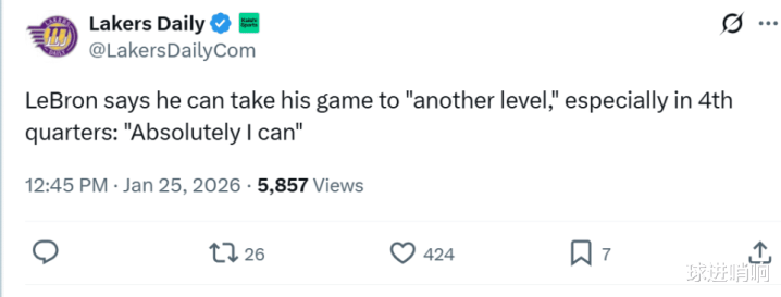 赛后詹姆斯也谈及这一情景,詹姆斯坦言:“比赛即是由小高潮所构成,咱们曾在半场已毕时进步13分,但他们第三节打出一波小高潮,不仅反超比分,还获取不小的进步,好在第四节咱们仍无意辰追分,在小节还剩差未几6分钟时,咱们打出了一波高潮,得以斥逐了比赛。”