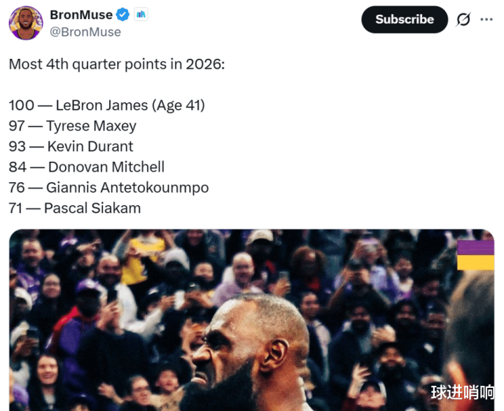 詹姆斯所言非虚,本赛季他在小节的发达一直十分出色,自从参加26年以来,詹姆斯小节依然拿下100分高居同期定约第一。