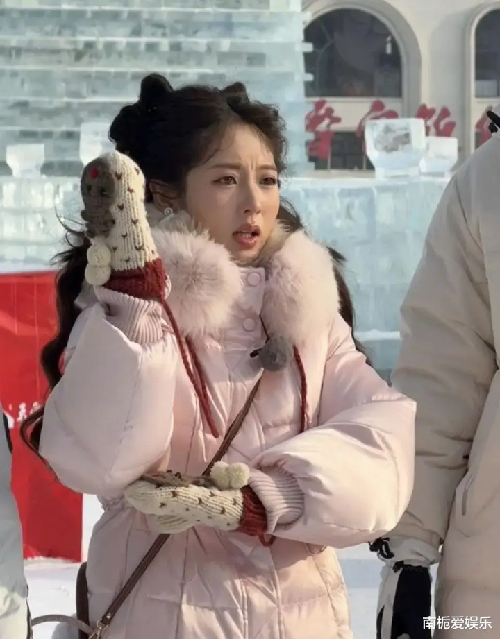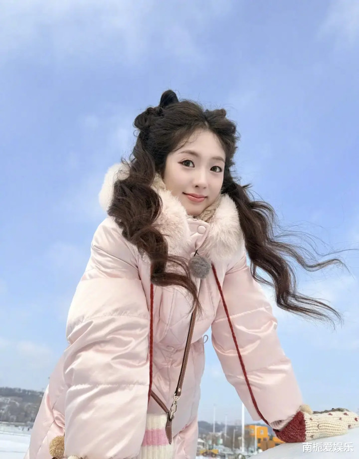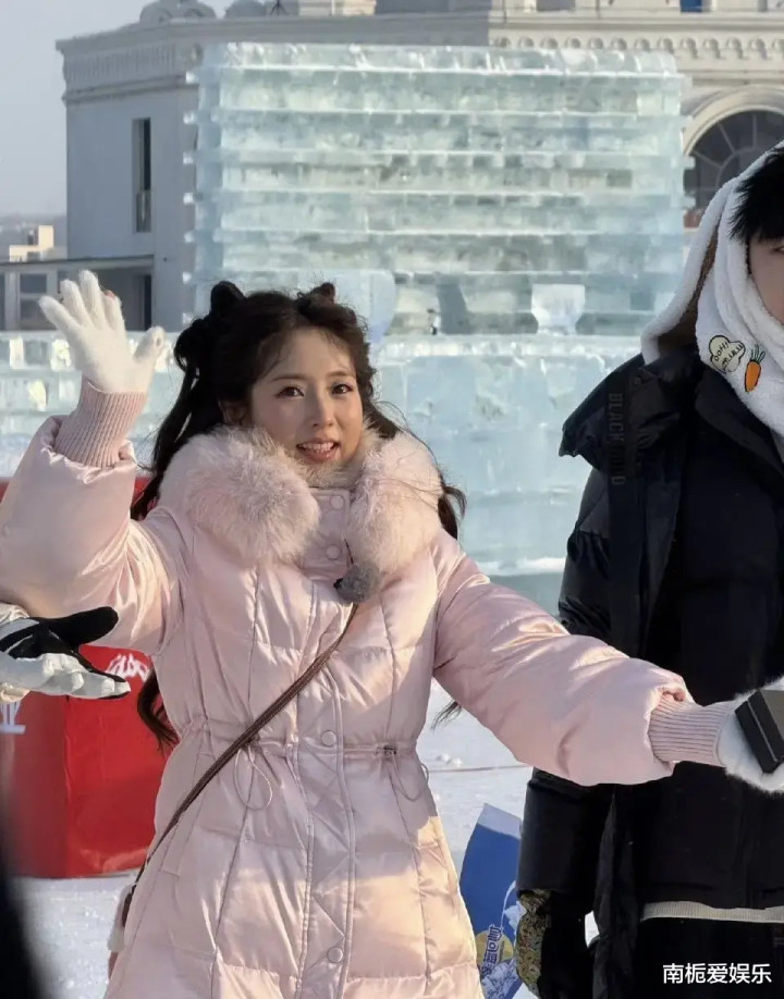 在长春冰雪新天下的虚幻冰雕前,邢菲的造型与场景神乎其神。她身穿雄厚蓬松的粉色羽绒服,像一团行走的棉花糖,与死后晶莹彻亮的冰雕竖立造成虚幻对比。抓拍画面中,她挥手与镜头互动,编发随行为轻微泛动,宛如动画中的冬日精灵。粉丝纷纷留言称:“这是冬日甜心暴击!”“粉色+雪地+小猫编发,平直戳中萌点!”全体视觉轻柔和蔼,极具颐养感。