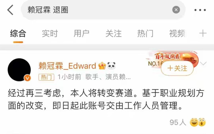 2024年6月,赖冠霖曾发文暗意将“滚动赛谈”,并称账号交由使命主谈主员处罚,随后面像也换周全黑,激勉外界对其是否“退圈”的洽商。