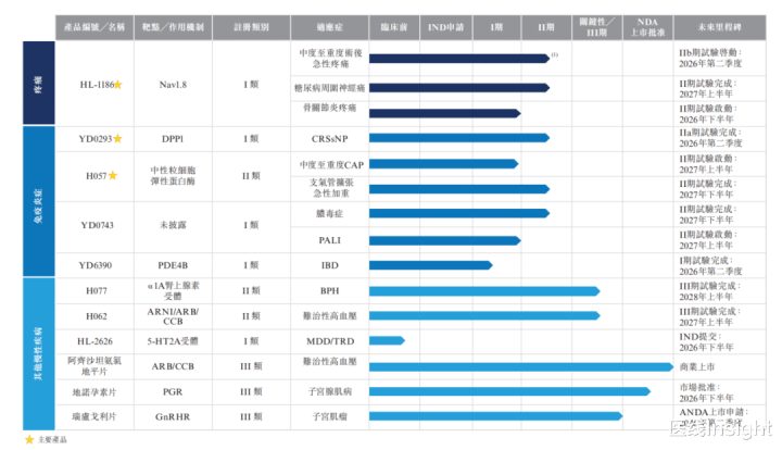 一是HL-1186。这是一款靶向急性和慢性疾苦的1类鼎新药(高采纳性Nav1.8扼制剂),旨在提供无成瘾性的非阿片类镇痛替代决议。