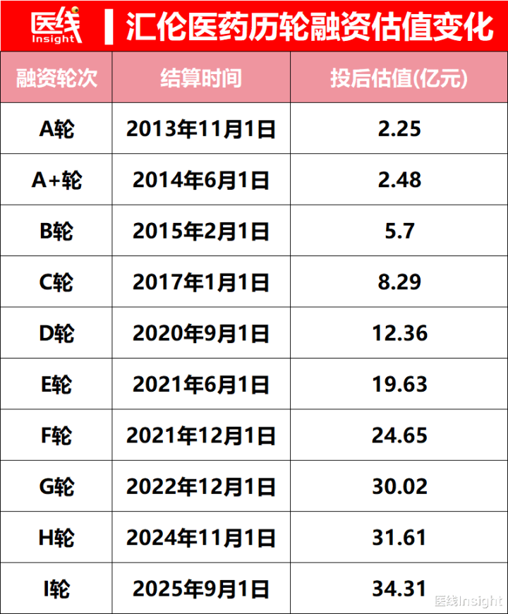 招股书泄露,自2013年10月启动A轮融资起,至2025年9月完成I轮融资,汇伦医药在12年间认为完成了10轮融资。