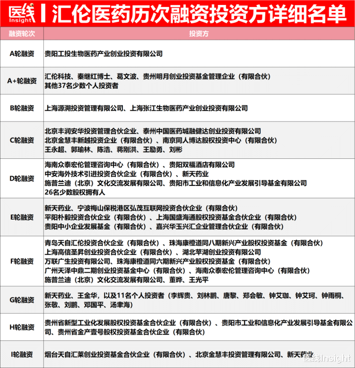 此外,由于汇伦医药当今的坐蓐基地位于江苏省泰州市,代表泰州的“融健达创投”也参与了投资;代表广州的“万联广生”和“广州天泽”,以及代表泸州市的“上海高信”(穿透后为北海璞湛等)也接踵入局。