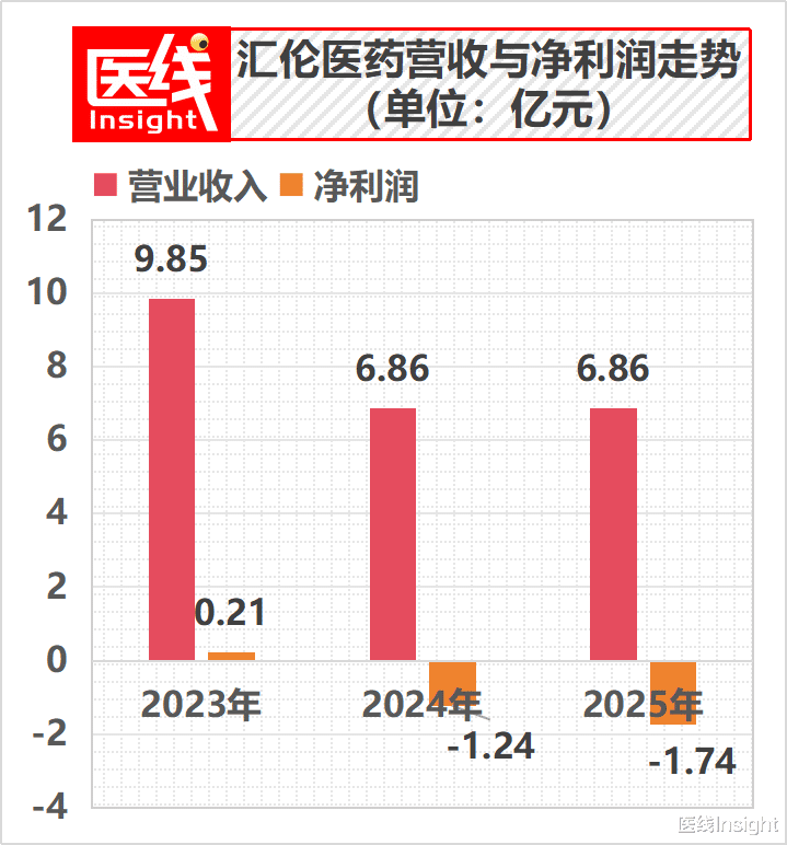 招股书泄露,2023年、2024年及2025年,汇伦医药的营业收入分辩为9.85亿元、6.86亿元和6.86亿元。