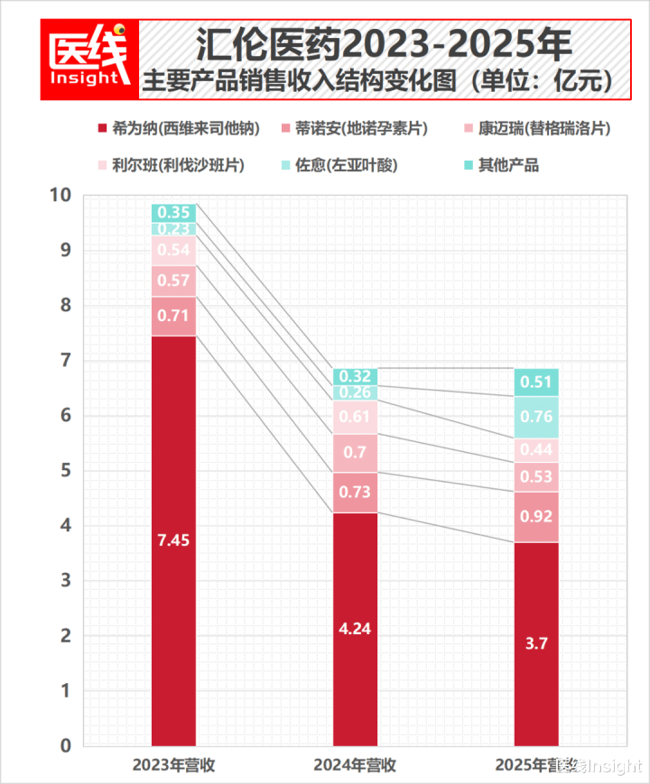 但跟着疫情后临床需求追思常态,加之分销商调度库存水平,希为纳在2024年和2025年的销售额分辩骤降至4.24亿元和3.70亿元,营收占比分辩下滑至61.9%和54.0%。